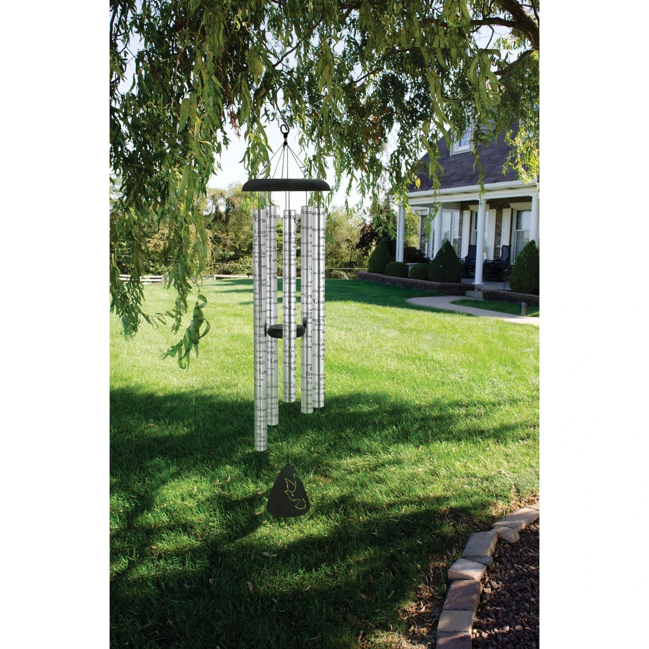 Silver outdoor patio wind chime with ‘Amazing Grace’ lyric design