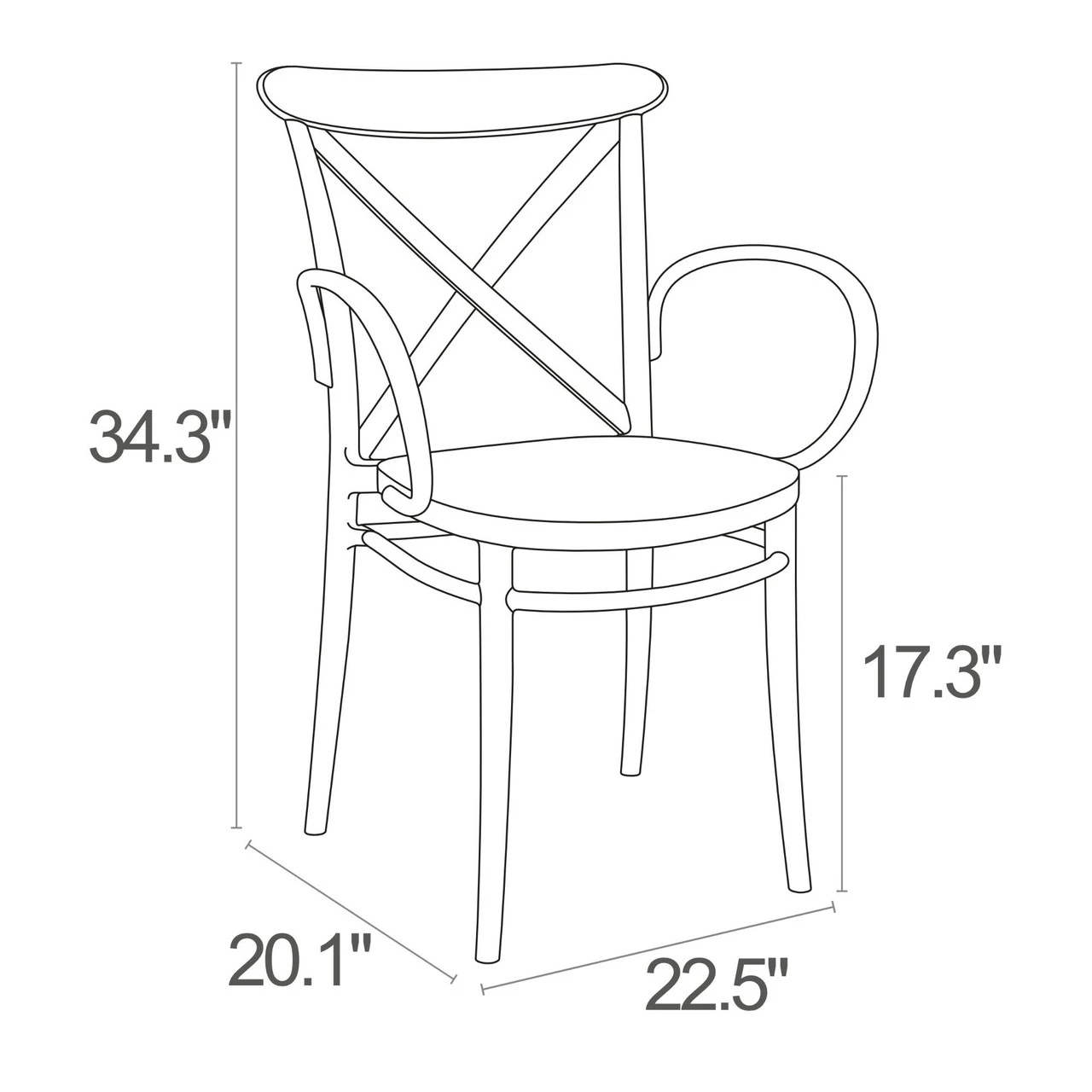 Chair: 34.25″H x 22.5″W x 20.5″D
