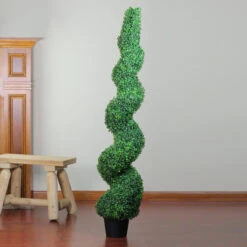 5′ Potted Two Toned Artificial Spiral Boxwood Garden Topiary
