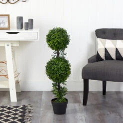 4.5′ Boxwood Double Ball Topiary Outdoor Artificial Tree In Black Pot