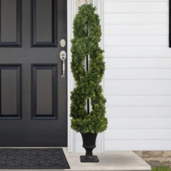 4.5′ Artificial Cedar Double Spiral Topiary Tree In Urn Style Pot, Unlit
