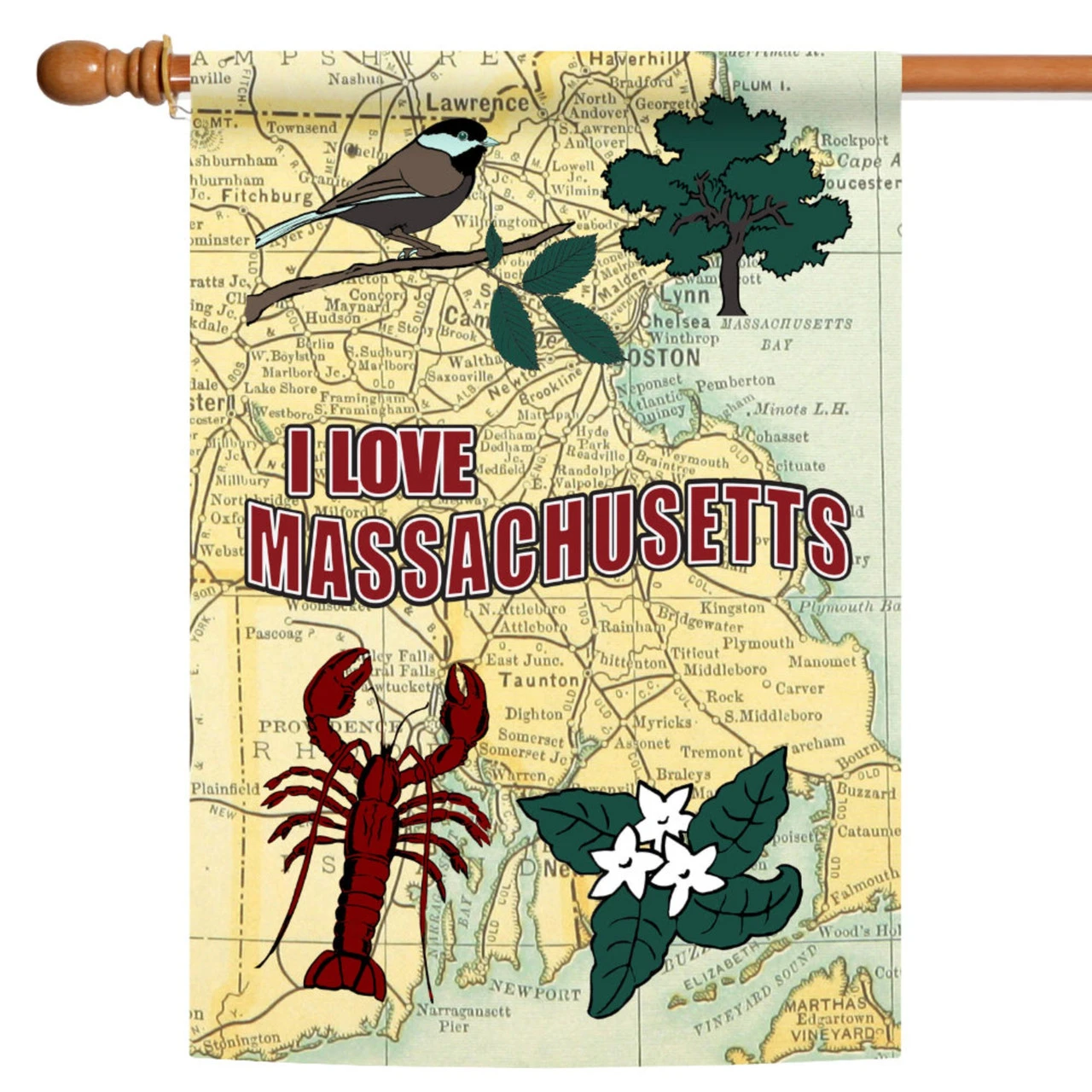 Flag reads “I Love Massachusetts”