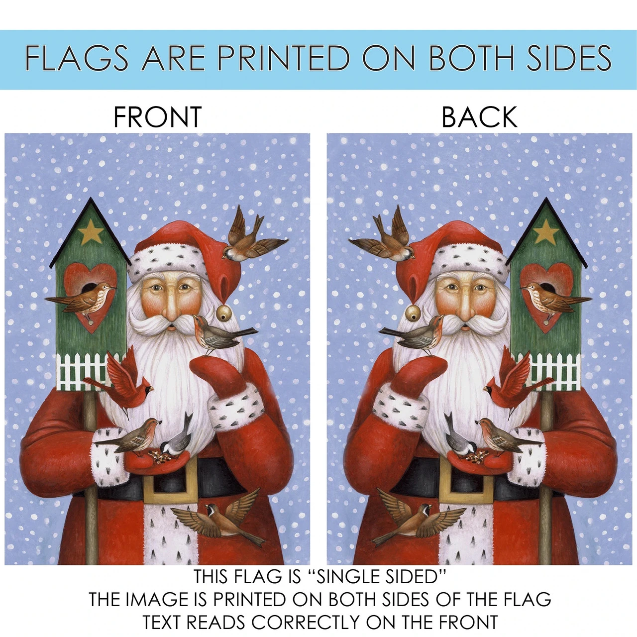 Christmas Santa With Cardinal Birds Outdoor House Flag 40″ X 28″