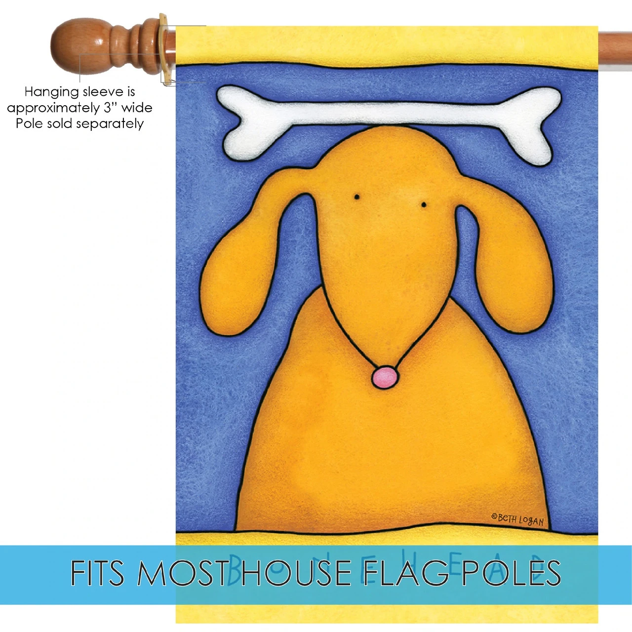 Cute Puppy ‘Bonehead’ Outdoor House Flag 40″ X 28″