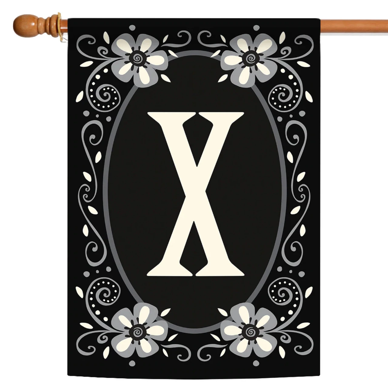 Elegant Floral Initial XOutdoor House Flag 40″ X 28″