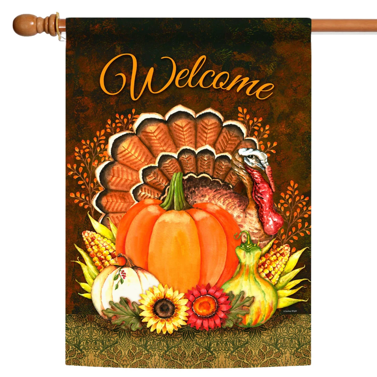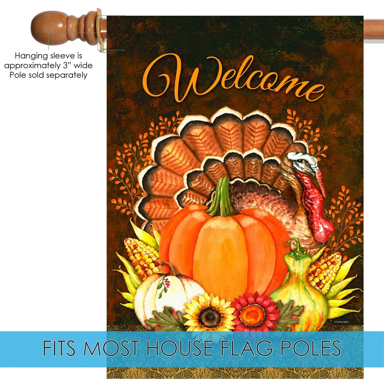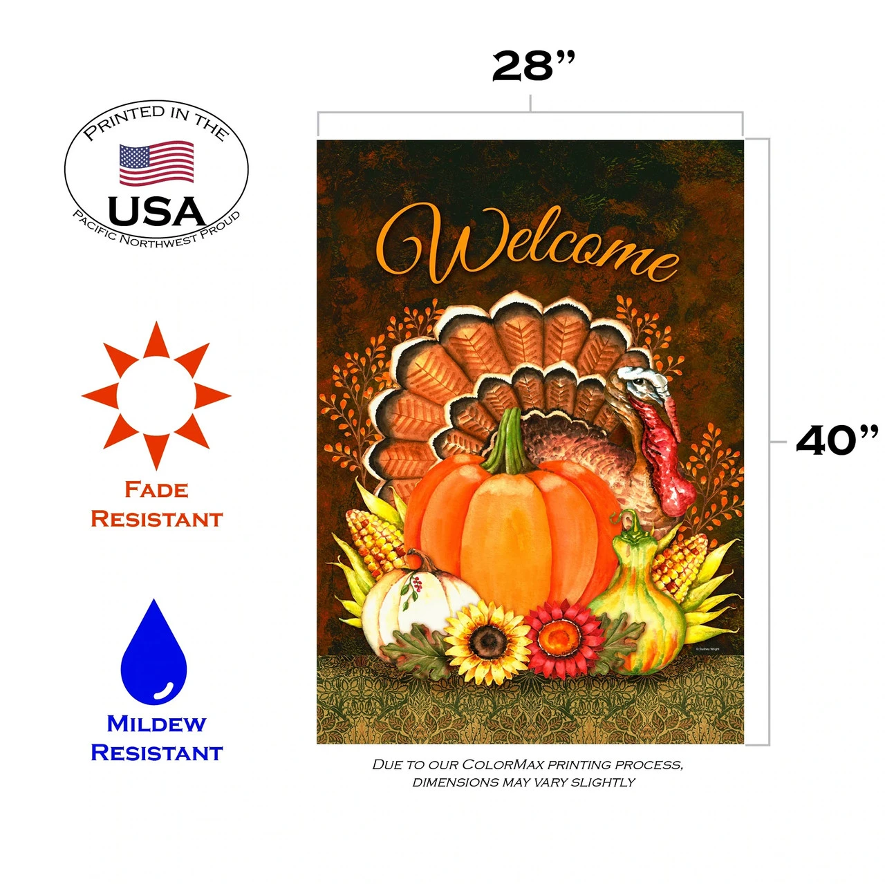 Fall Harvest Turkey ‘Welcome’ Outdoor House Flag 40″ X 28″
