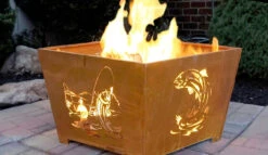 24″ Brown Rustic Finish Natural Scene Square Outdoor Fire Basket