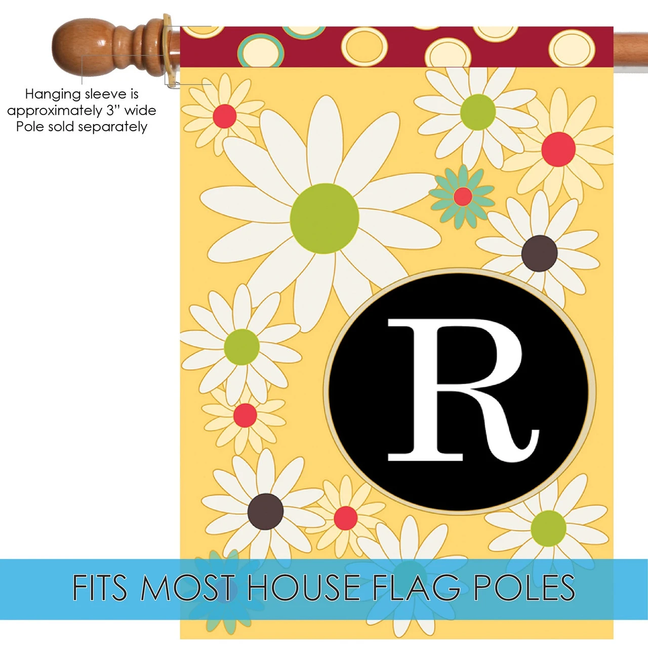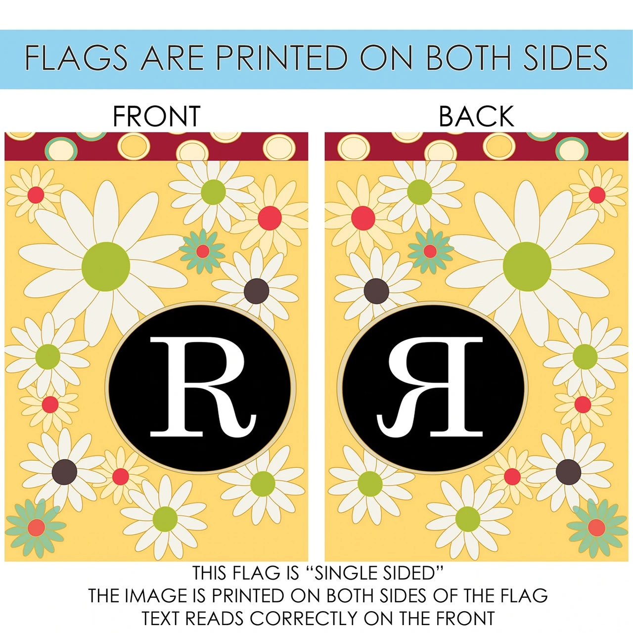 Floral Monogram Letter R Outdoor House Flag 40″ X 28″