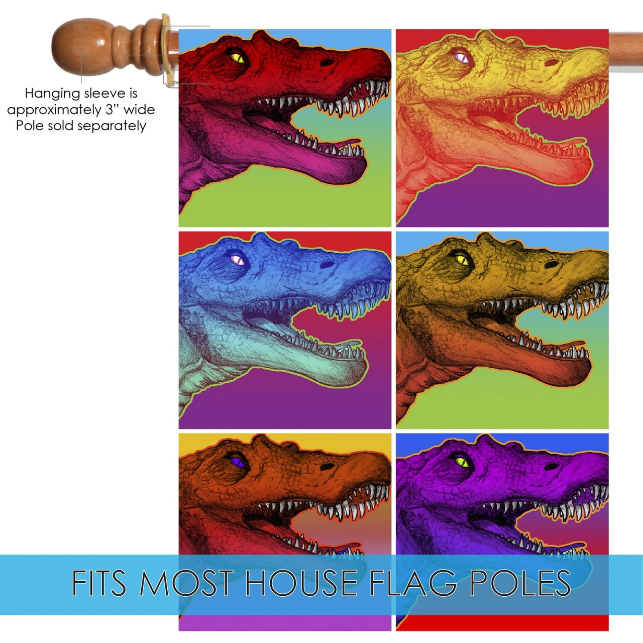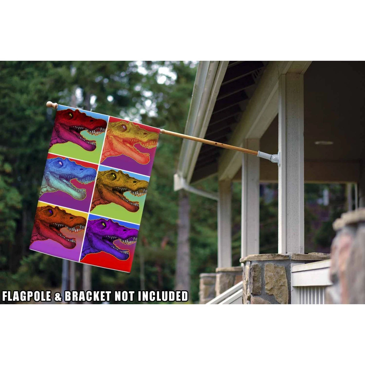 Neon dinosaur house flag