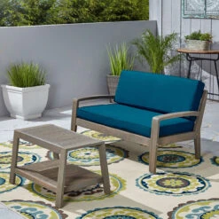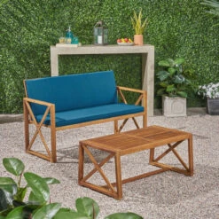 3-Piece Brown Outdoor Furniture Patio Chat Set – Gray Cushions