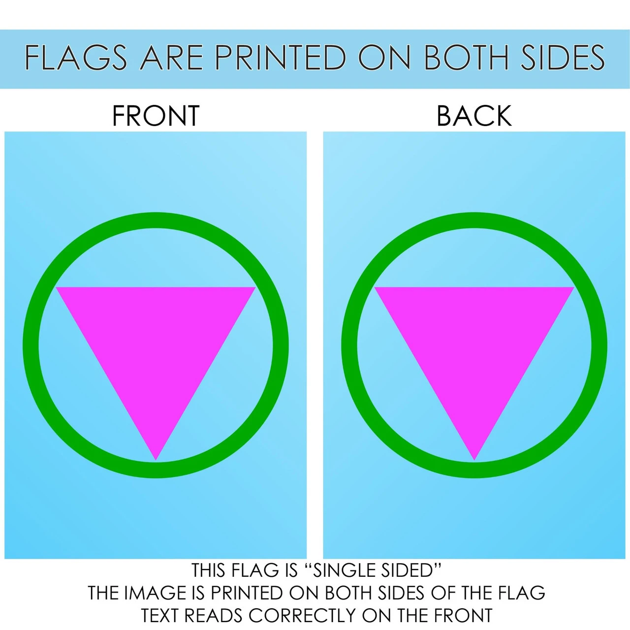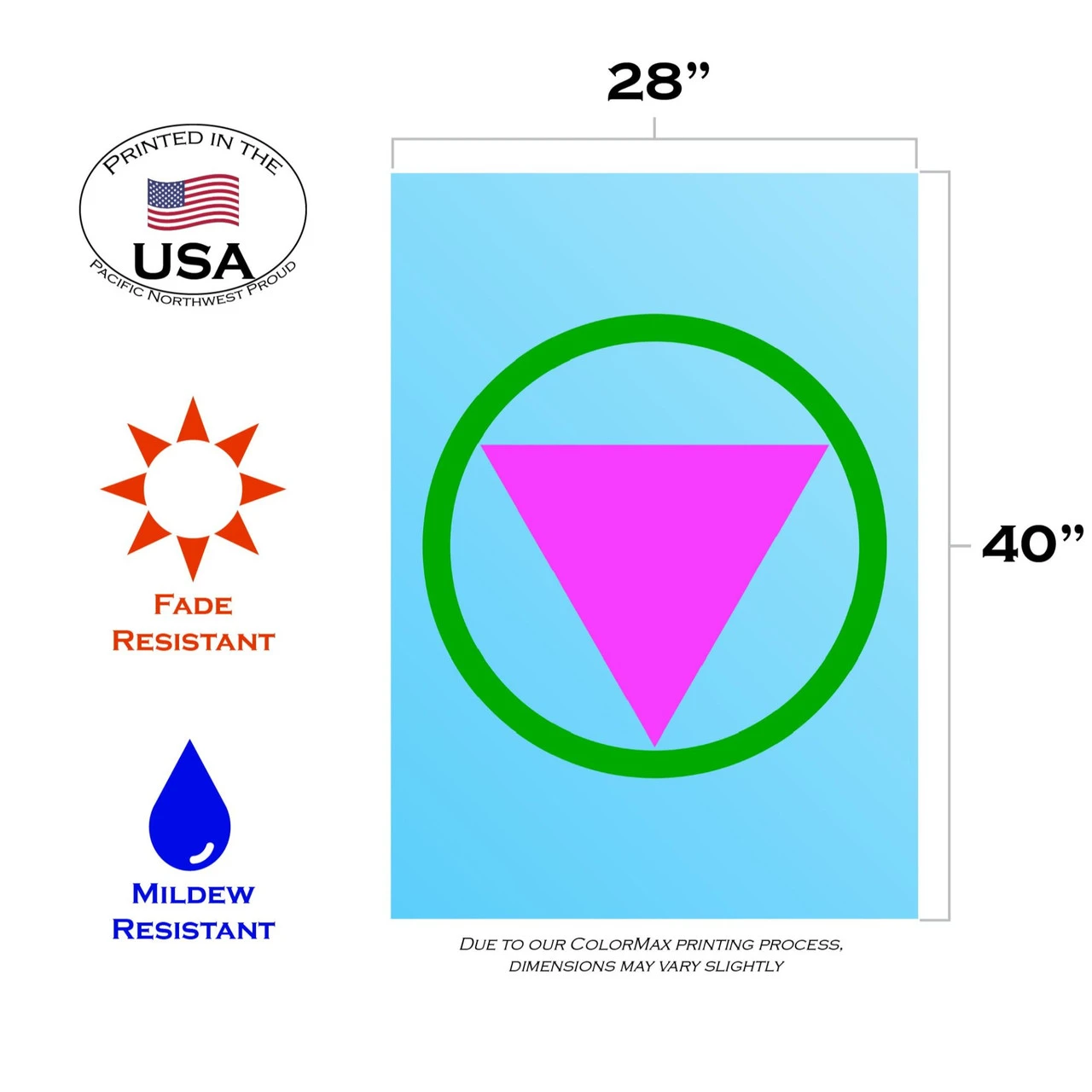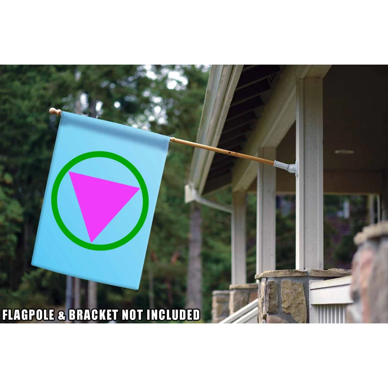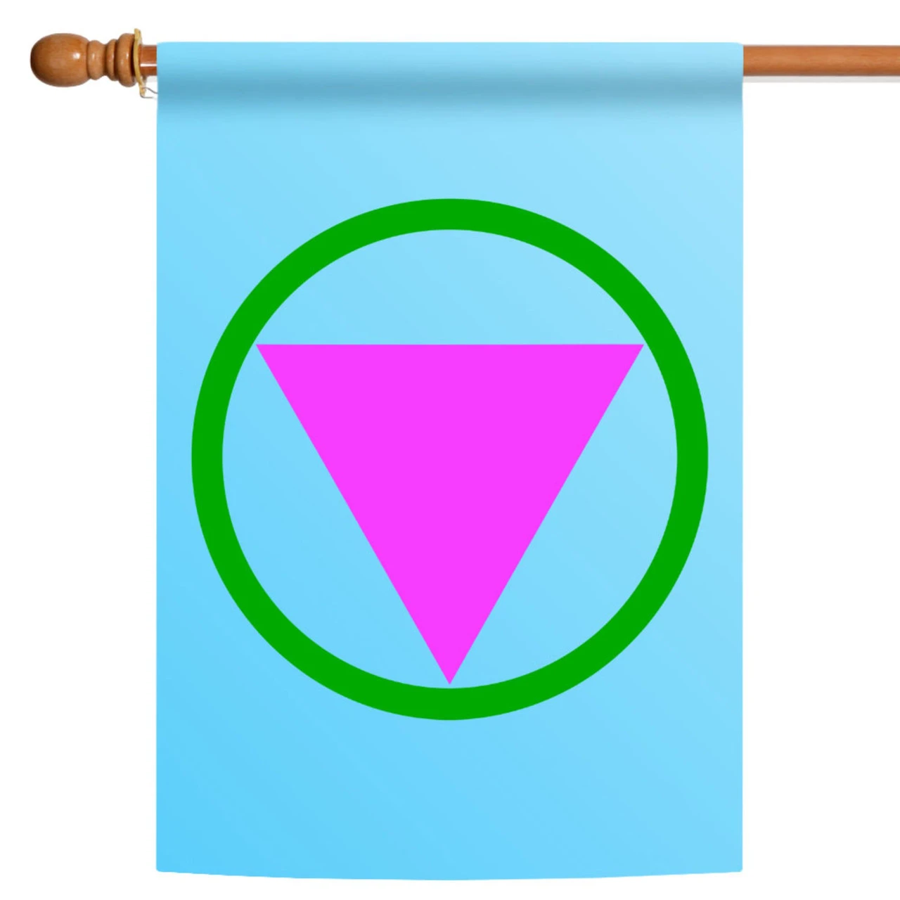 House flag accented with Inverted pink triangle surrounded by a green circle in a blue backdrop