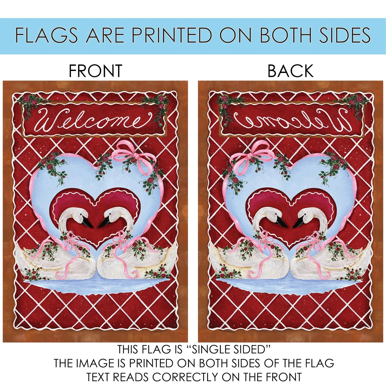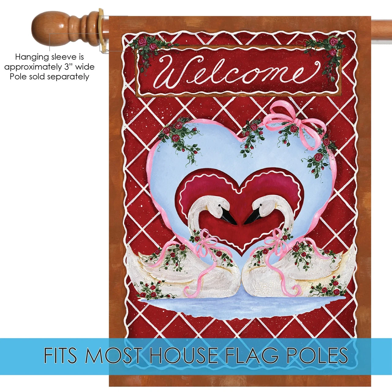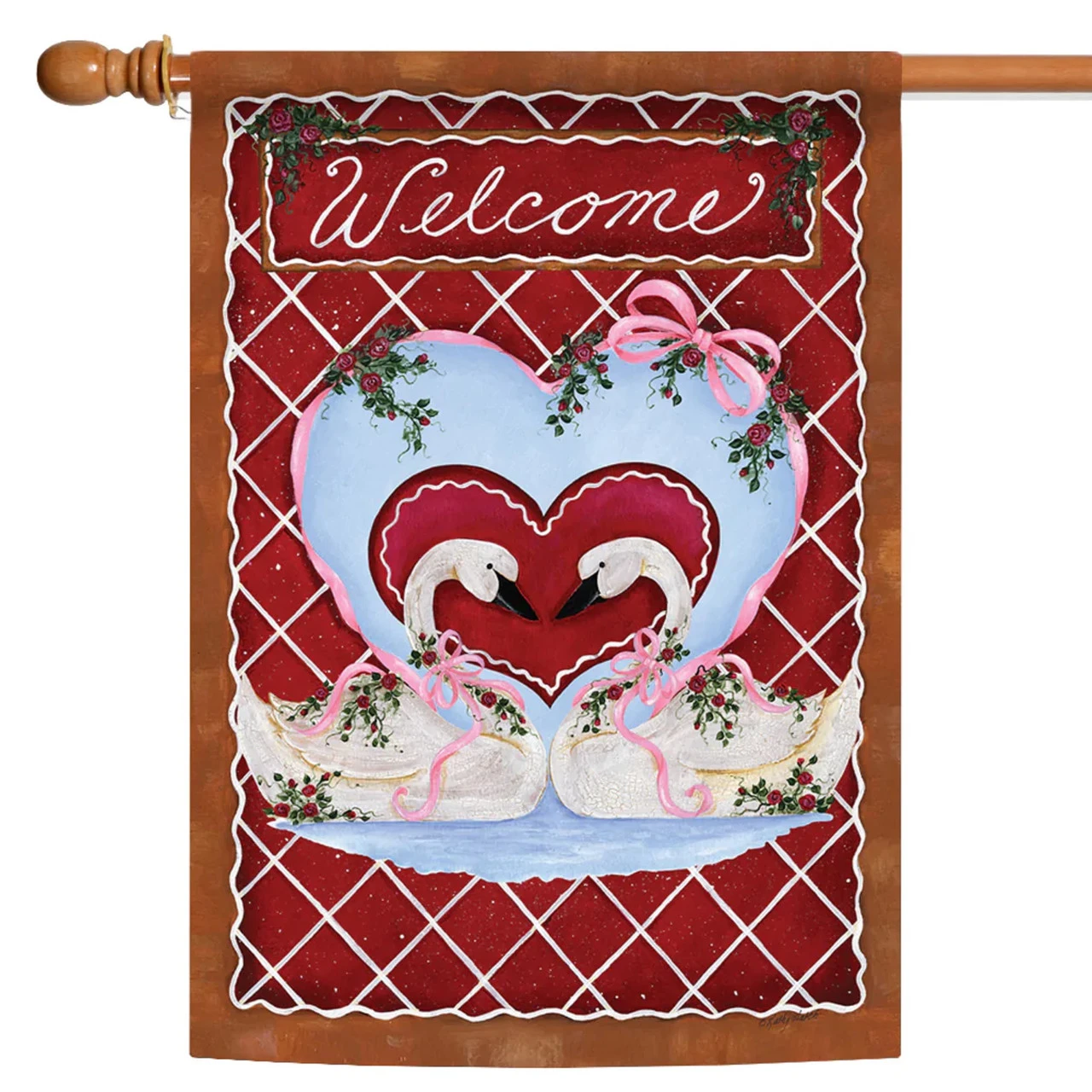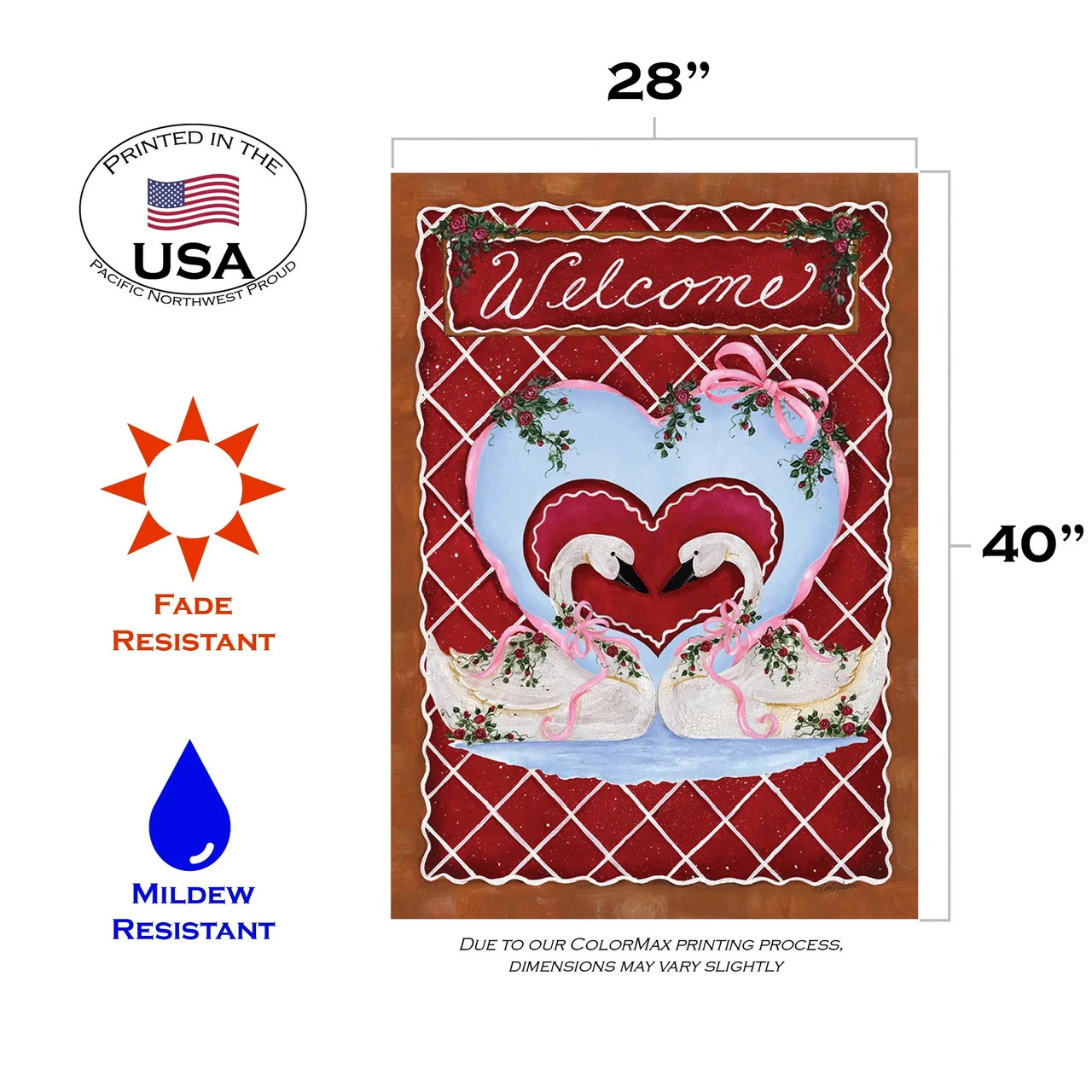 Sweet Swan Welcome Valentines Outdoor House Flag 40″ X 28″